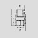 Model Bolt Size Hexagon AF (mm) L1 (mm) L2 (mm) D1 (mm) D2 (mm) HGS2565 M42 65 100 50 119 119 HGS2570 M45 70 105 52 128 128 HGS2575 M52 80 120 60 132 132 HGS2580 M56 85 120 65 138 138 HGS2590 M60 90 130 70 142 142 HGS2595 M64 95 130 75 148 148 HGS25100 M68 100 135 80 152 152 HGS25105 M72 105 140 85 160 160 HGS25110 M76 110 145 90 164 164 HGS25120 M80 115 150 95 170 170 HGS25125 M85 120 155 100 175 175 HGS25130 M90 125 160 105 180 180 HGS25135 M95 130 165 110 185 185 HGS25140 M100 135 170 115 190 190 HGS25145 M105 140 175 120 195 195 HGS25150 M110 145 180 125 200 200